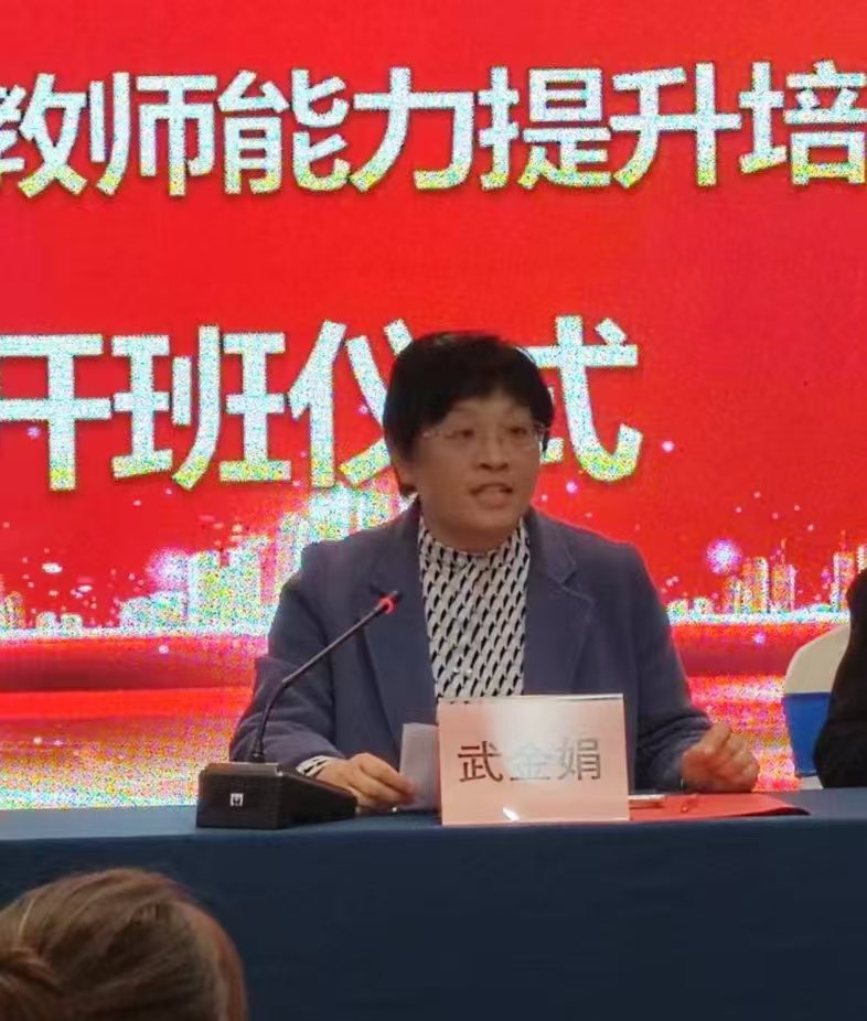 仪式开始副校长武金娟代表周口文理职业学院对来自驻马店市50名农村幼儿园骨干教师的到来表示热烈的欢迎。并就我校的办学历史、办学特色、学科门类、专业建设、社会服务等基本情况等进行了介绍。她深入阐述了本期培训的重要意义,强调在当前推进学前教育高质量发展的关键时期,农村幼儿园骨干教师肩负着重要使命。武校长希望学员们珍惜这次宝贵的学习机会,实现从教育实践者到专业学习者的角色转变,通过系统研修提升专业素养,为农村学前教育事业发展贡献力量。